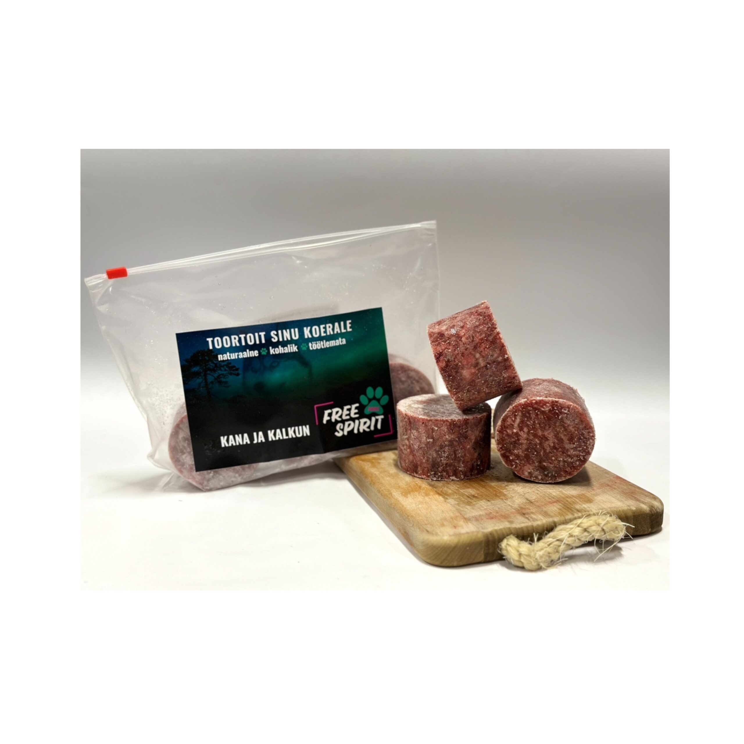 Koostis: Kana (kael 45%, süda 22%, selg 15%), veisemaks 10%, kalkunikael 8%. Luu osakaal 12-15%.