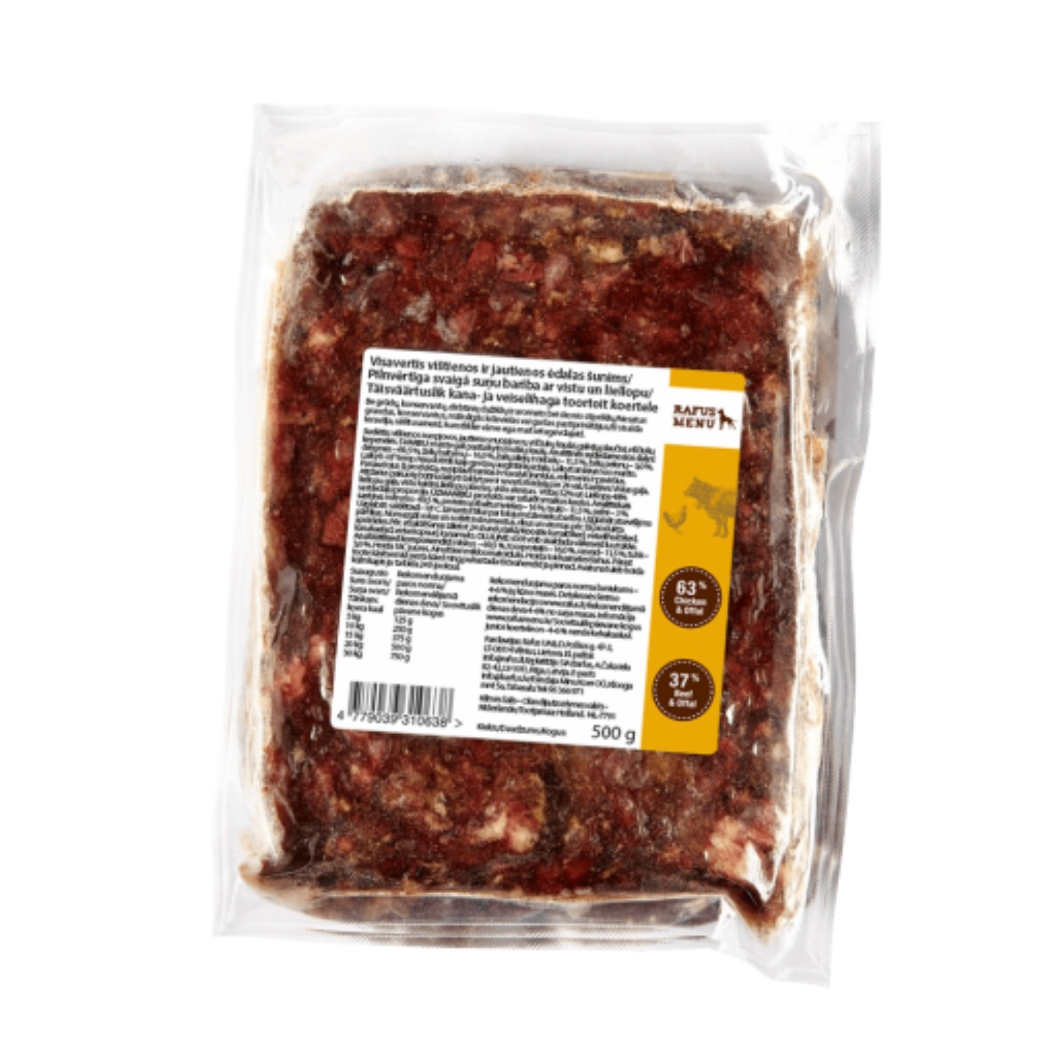 Koostis: kanalõiked, veiseliha lõiked, kanakaelad, veise kopsud, kanamaks.