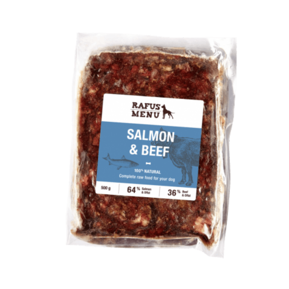 Koostis: lõhe hakkliha, veiseliha lõiked, lõhe rümbad, lõhe pead, veise neerud, veisemaks.